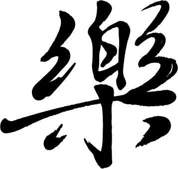 It is said 漢字(Chinese character)of 楽【RAKU】is shaping a person dancing with bells of Shinto ritual in one’s both hands on the top of tree stump/or a shape of ancient bell’s musical instruments.